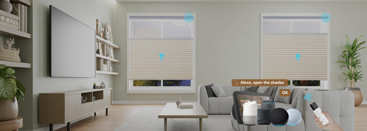 Transform your living space with motorized cellular shades. Experience effortless operation and enhanced insulation for year-round comfort in your home.