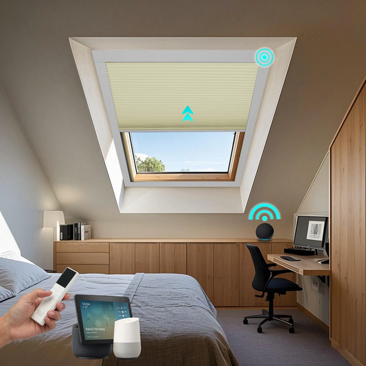 Motorized skylight shades are electric-powered window coverings designed specifically for skylights and overhead windows. They allow you to open and close shades effortlessly using a remote, wall switch, mobile app, or voice assistant—making them ideal for high, angled, or hard-to-reach skylights.