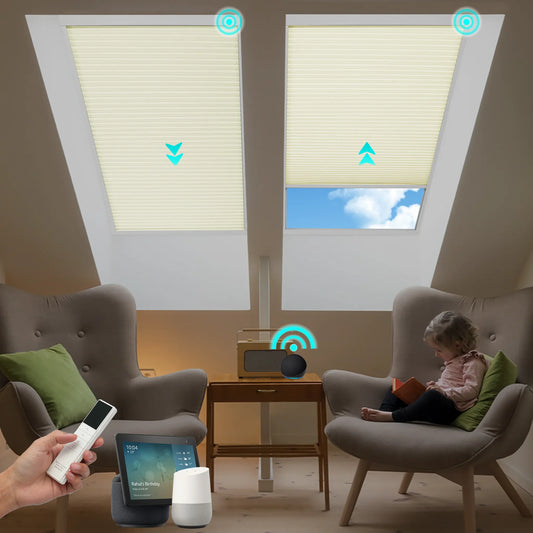 Kurlax Motorized Skylight Cellular Shades - 100% Blackout