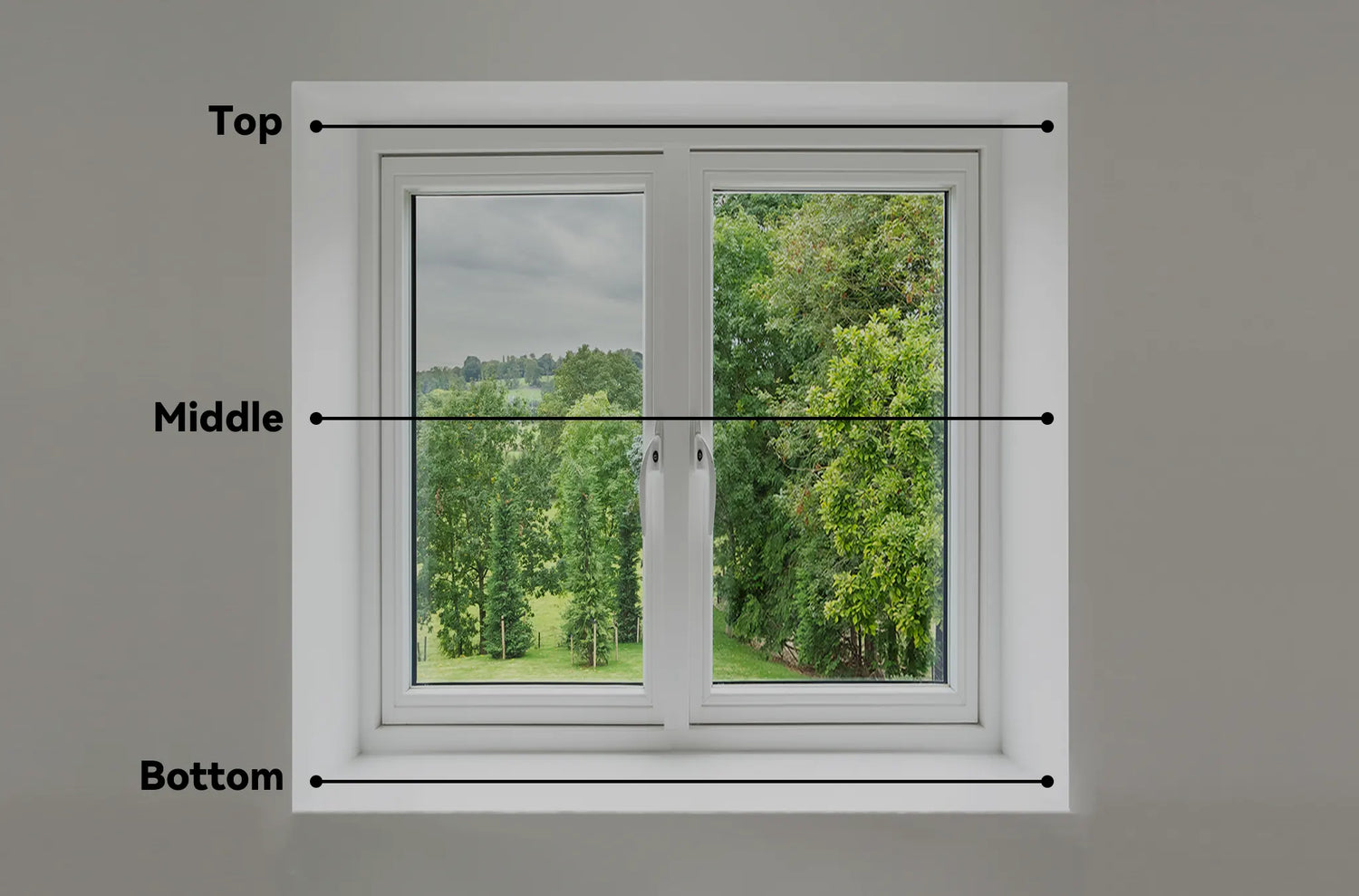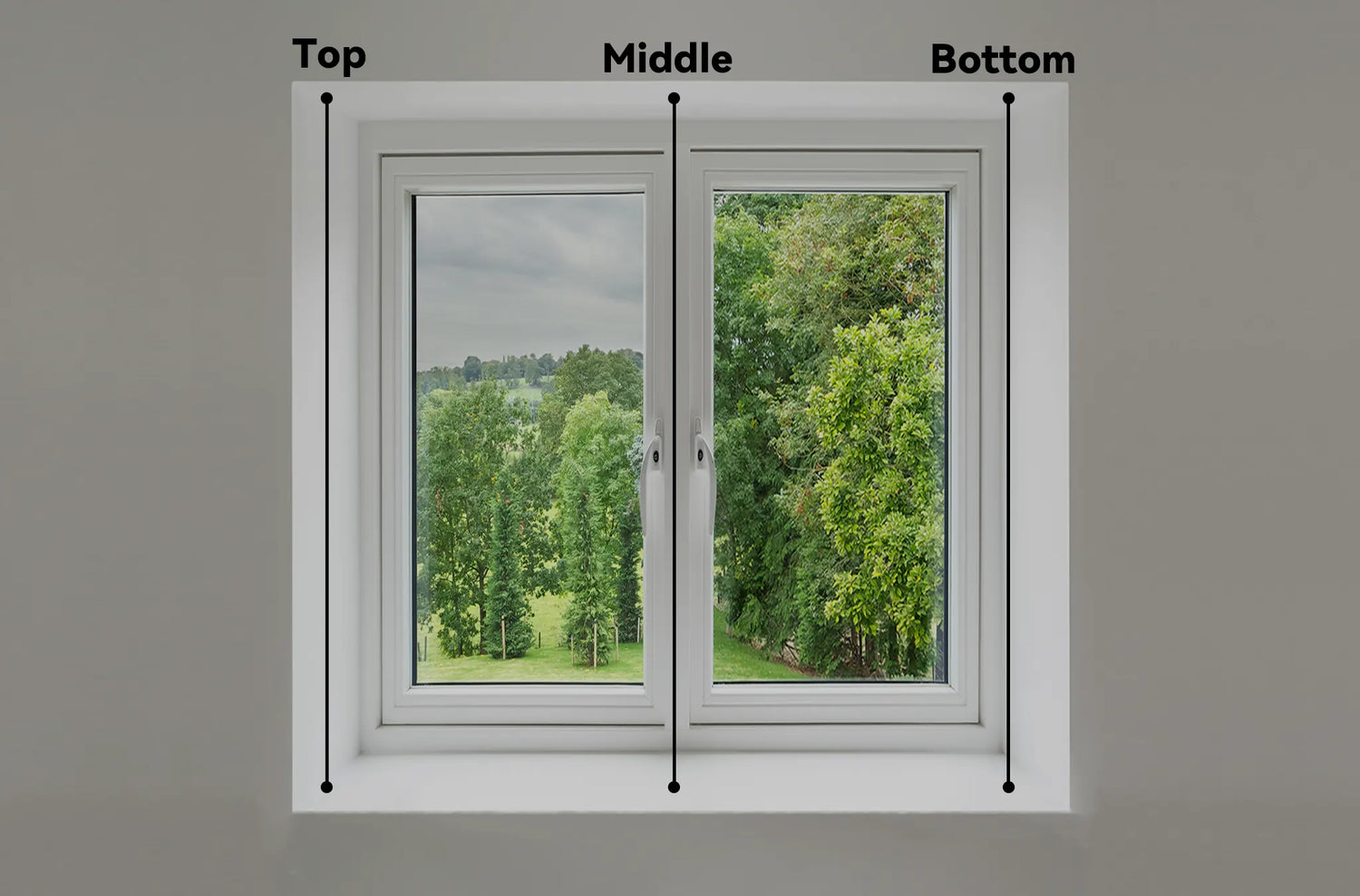 Windows are rarely perfectly square, so measure in three spots to get the most accurate width for your motorized cellular shades: