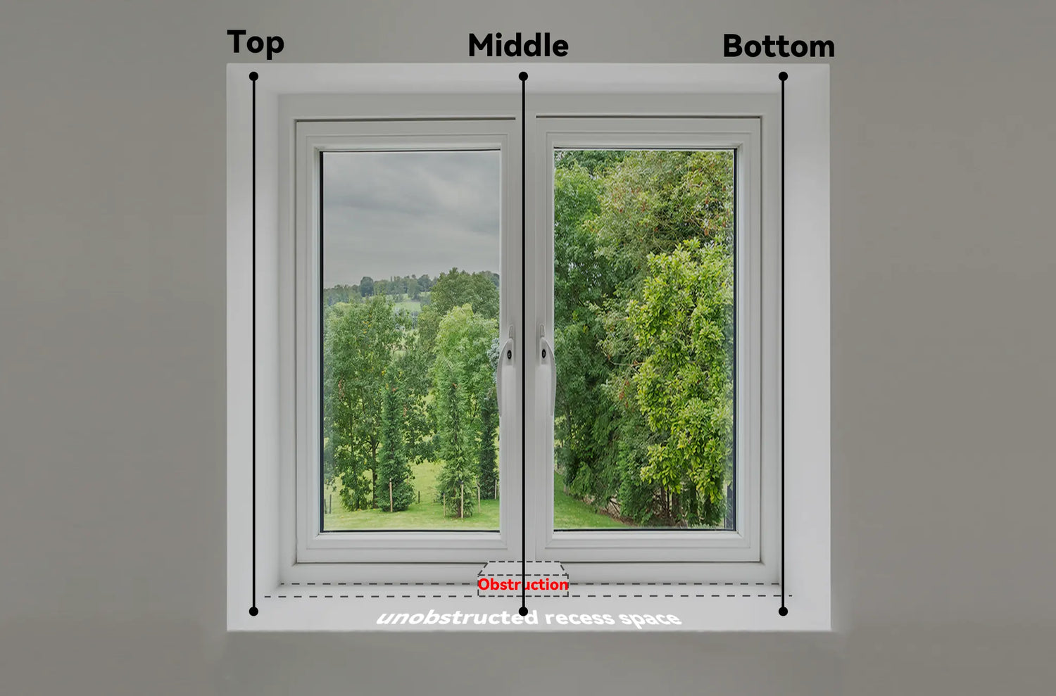 - Measure the obstacle depth — from the window glass to the front edge of the obstacle (like a handle or lock).