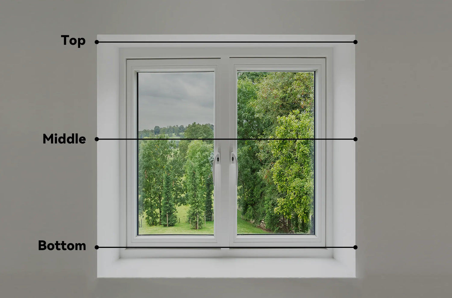 Because most windows aren’t perfectly square, measure the width in three different places: