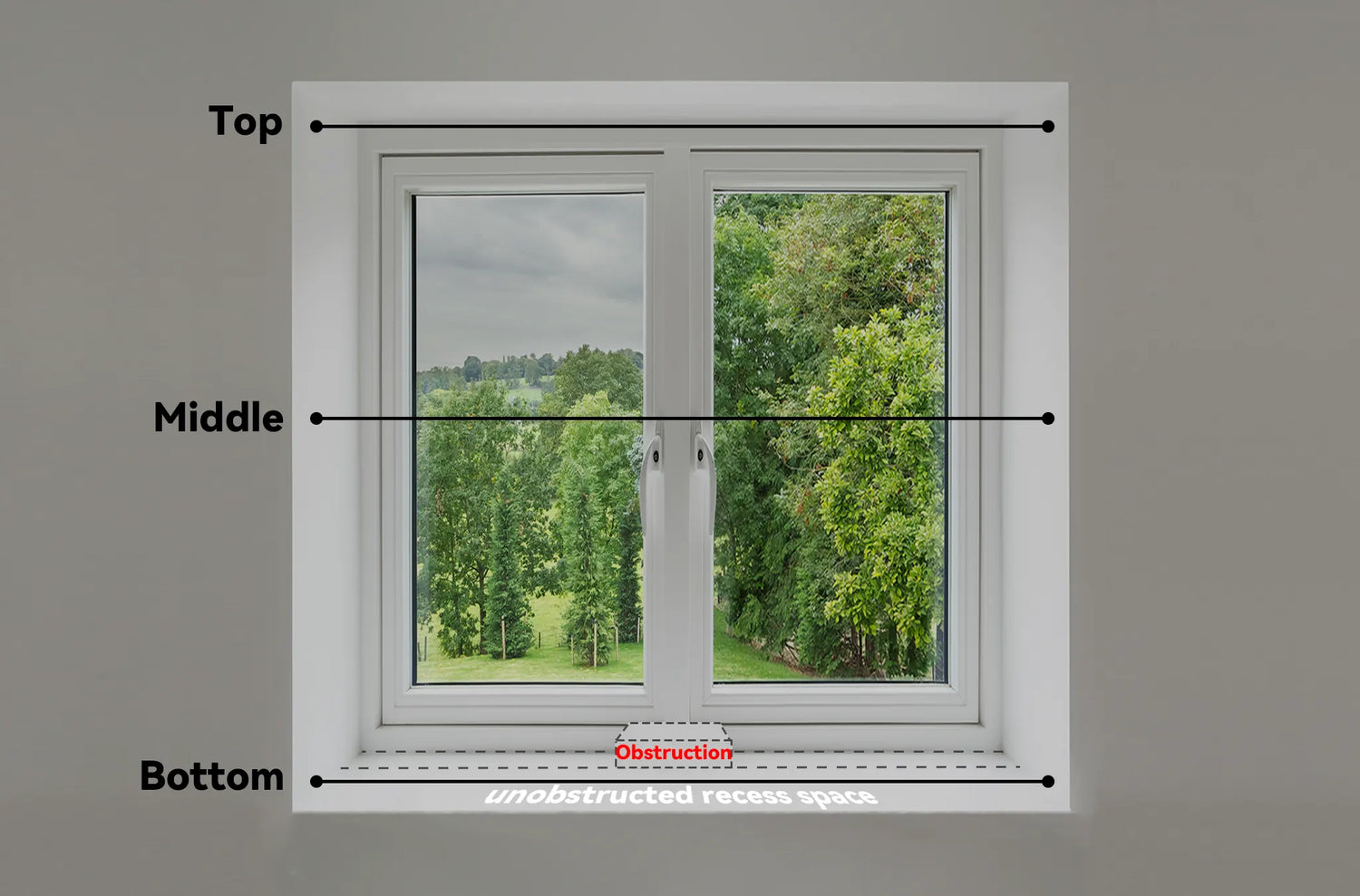 - To ensure smooth operation, your window recess needs at least 2 ½" (6.3 cm) of unobstructed depth.
